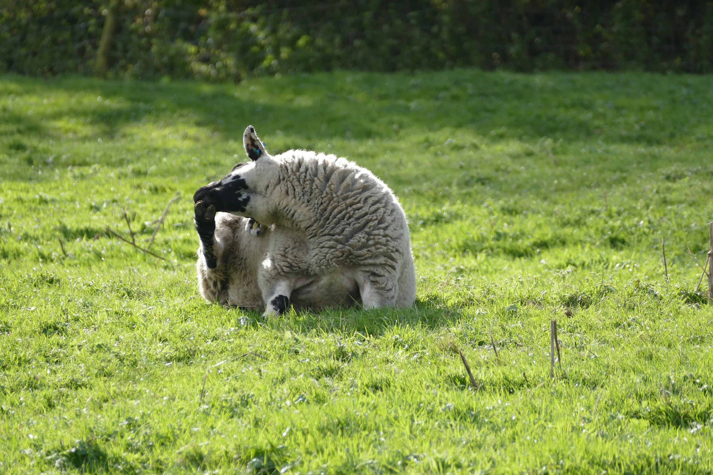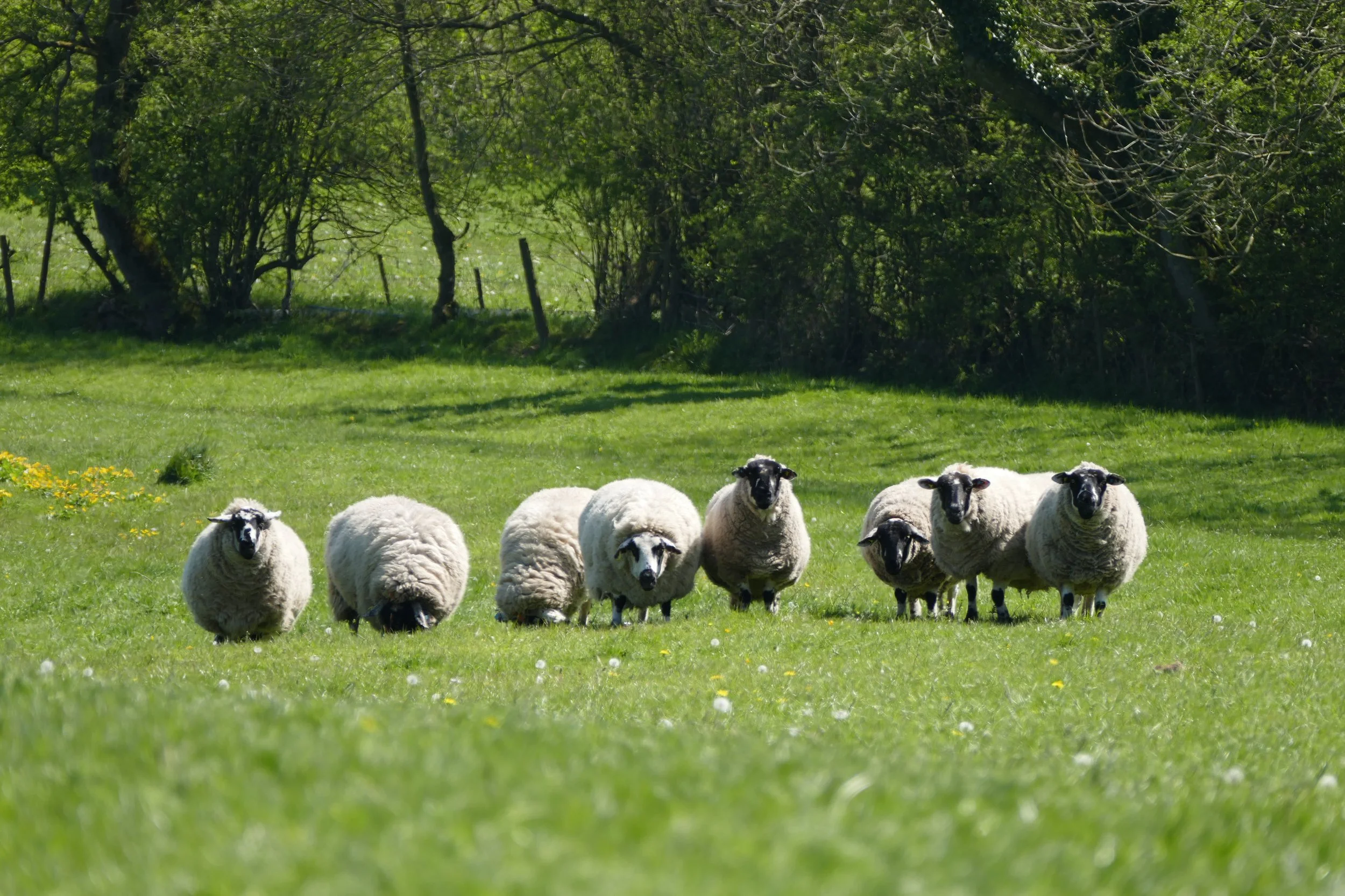 Our flock of Derbyshire Gritstones live in the four acre field attached to the house. We are currently running the flock down to give the ground some rest but we have had 26 sheep here during the summer. At the moment we have five ewes, five lambs and one ram. Only two are named: Skully, our old timer ewe, and Brucey, the ram.